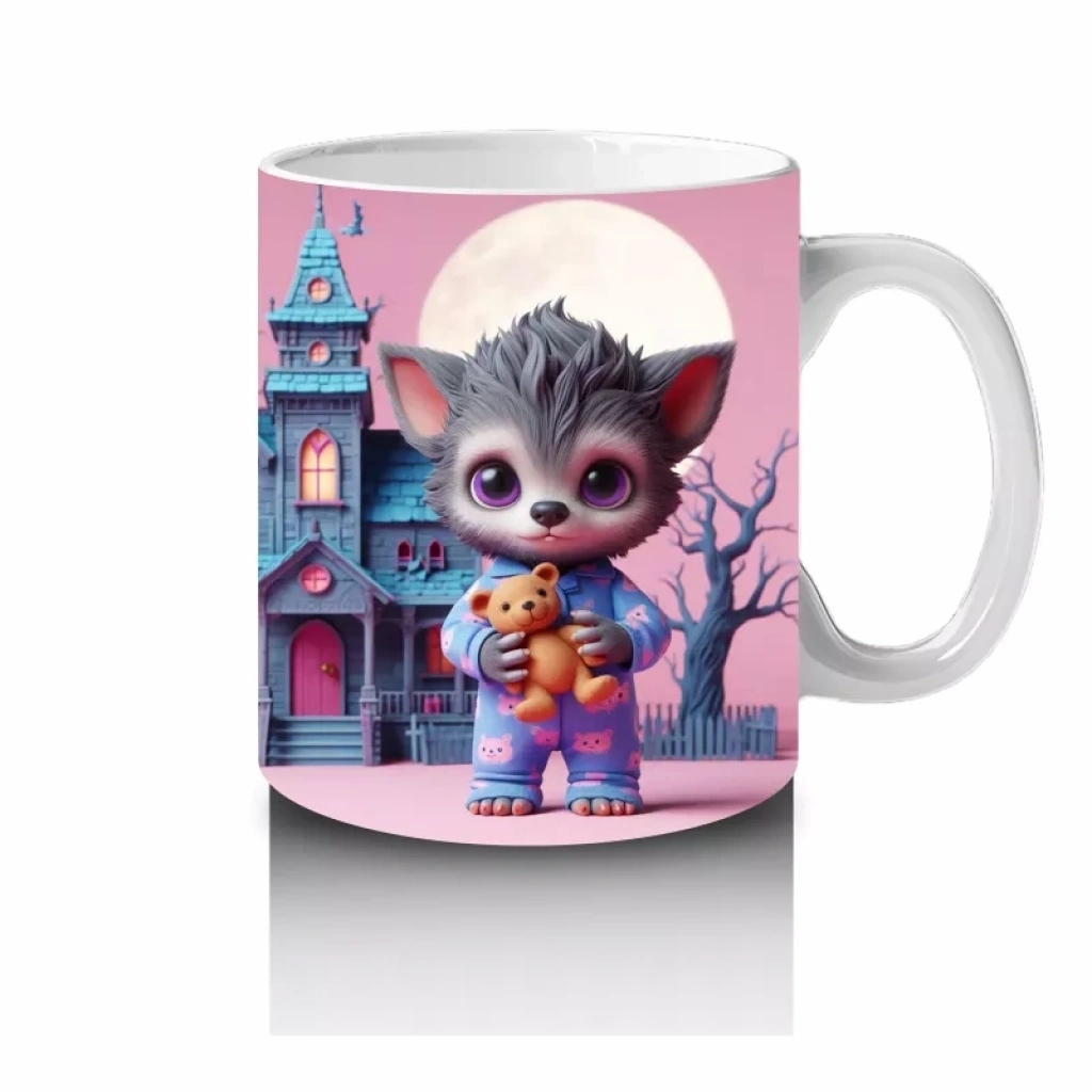 Perili şato önünde sevimli cadı kız figürüyle tasarlanan bu pembe kupa bardak, Cadılar Bayramı’na tatlı ve büyülü bir hava katar.
