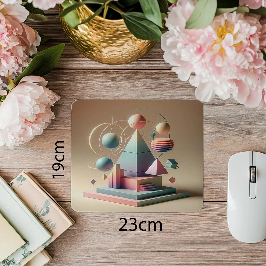 Piramit ve daire şekillerinin modern bir karışımıyla tasarlanmış bu mousepad, geometrik kontrast ve uyumu estetik bir şekilde sunar. Dinamik formlarıyla çalışma alanınıza şıklık ve hareket katar.
