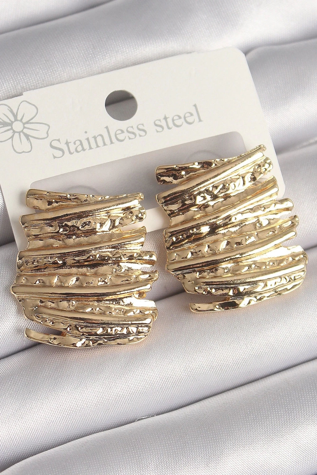 Pirinç Gold Renk İşlemeli Kare Plaka Model Kadın Küpe