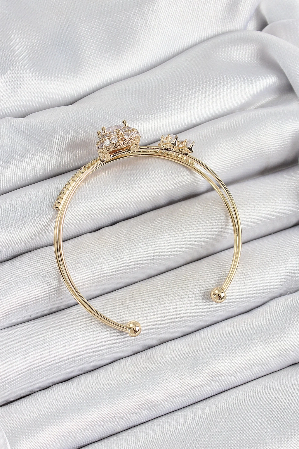 Pirinç Gold Renk Kalpli Zirkon Taşlı Kadın Bileklik