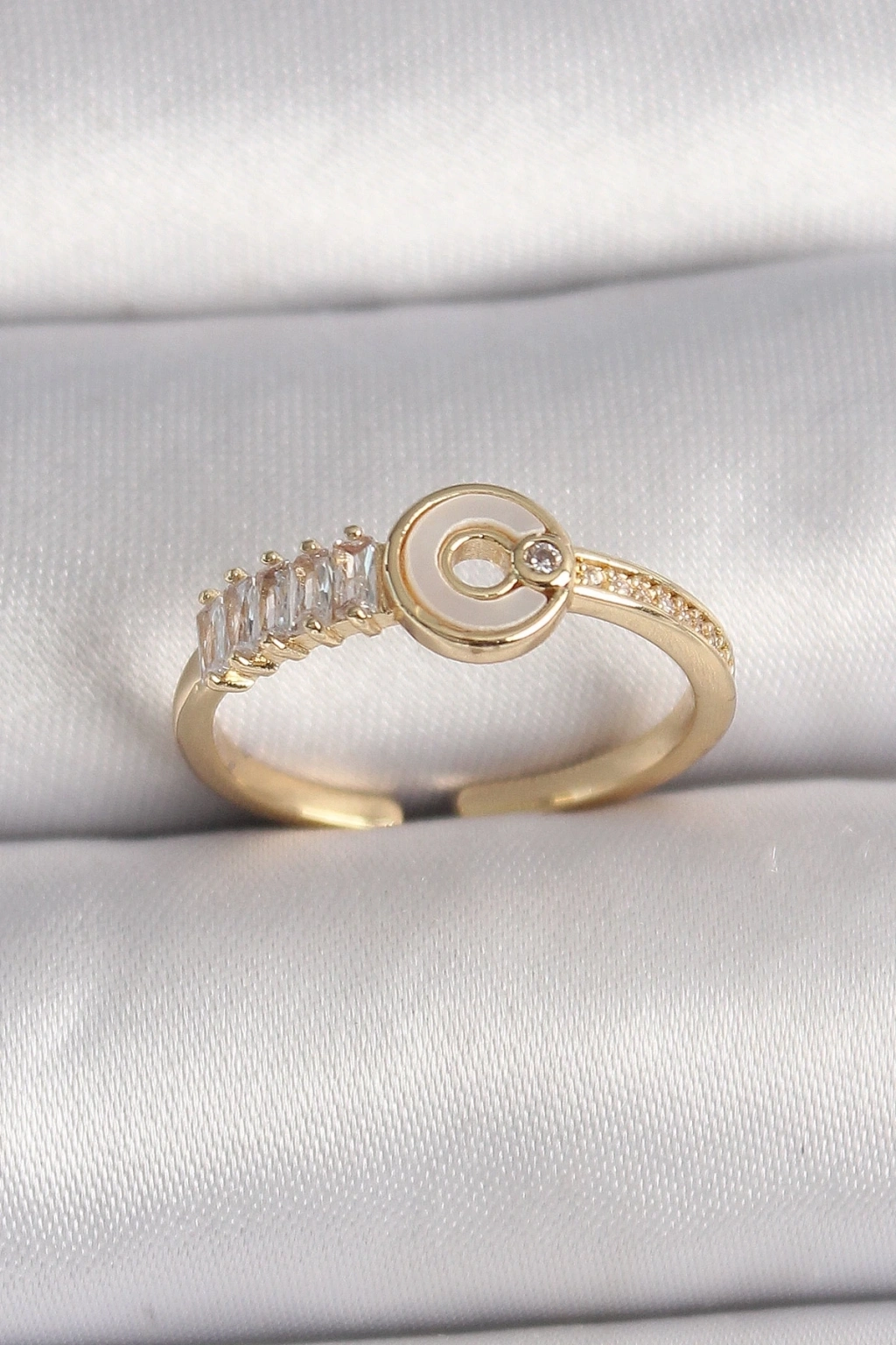 Pirinç Gold Renk Zirkon Taşlı Ayarlanabilir Kadın Yüzük