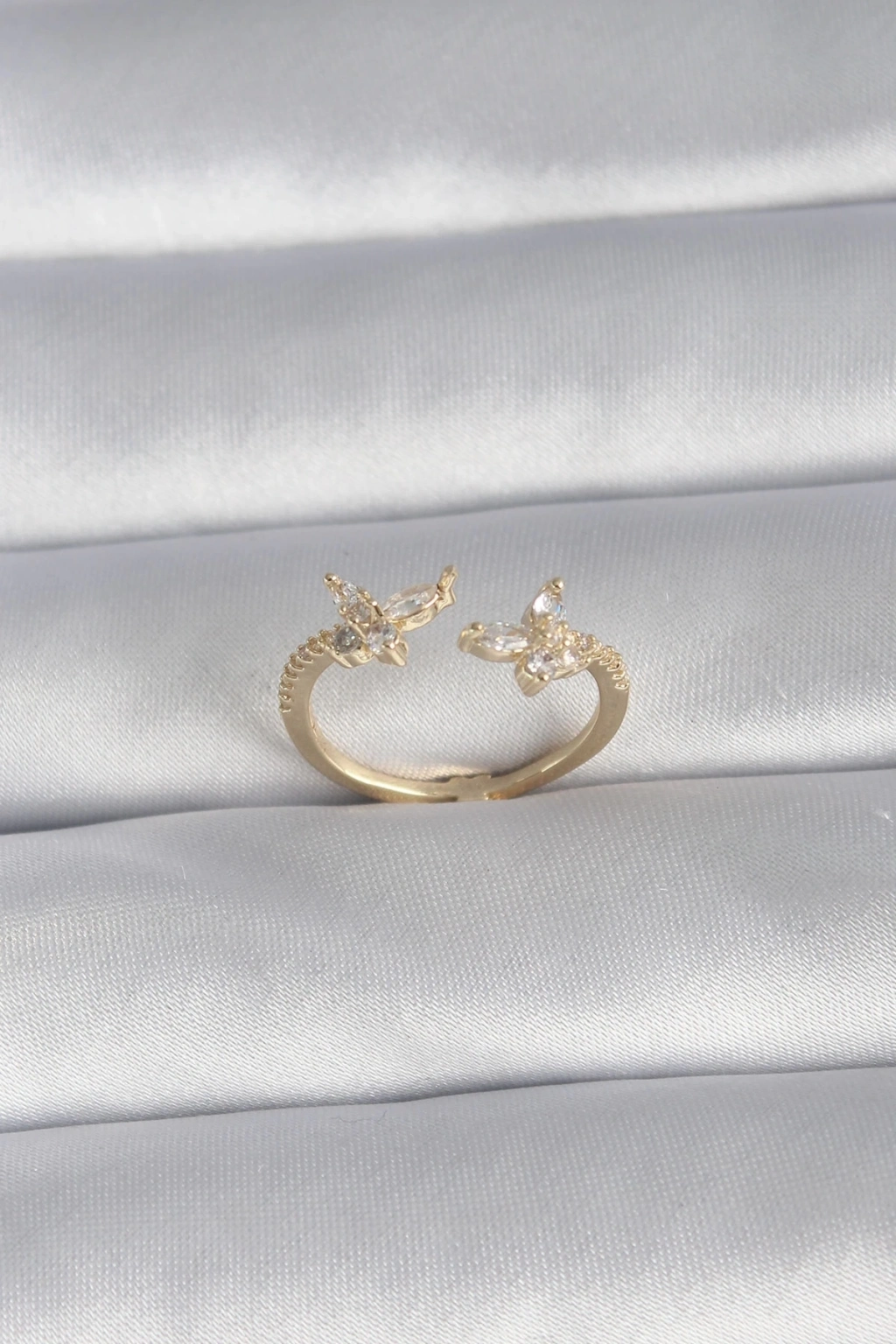• Pirinç Gold Renk Zirkon Taşlı Kelebek Model Kadın Yüzük
