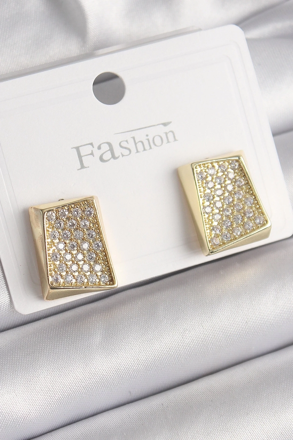Pirinç Gold Renk Zirkon Taşlı Plaka Model Kadın Küpe