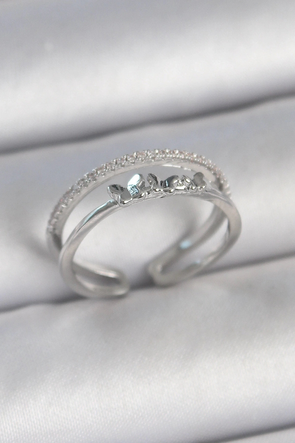 • Pirinç Gümüş Renk 2'Li Zirkon Taş Detaylı Kelebek Figür Ayarlanabilir Model Kadın Yüzük