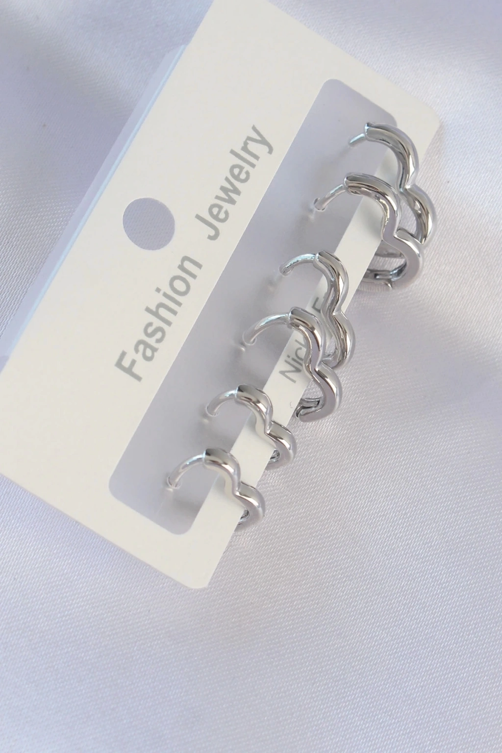 Pirinç Gümüş Renk Kalp Model Küpe Seti