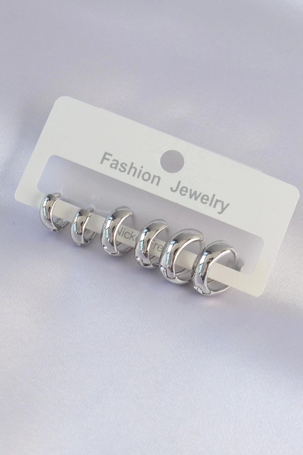 Pirinç Gümüş Renk Oval Bombeli Küpe Seti