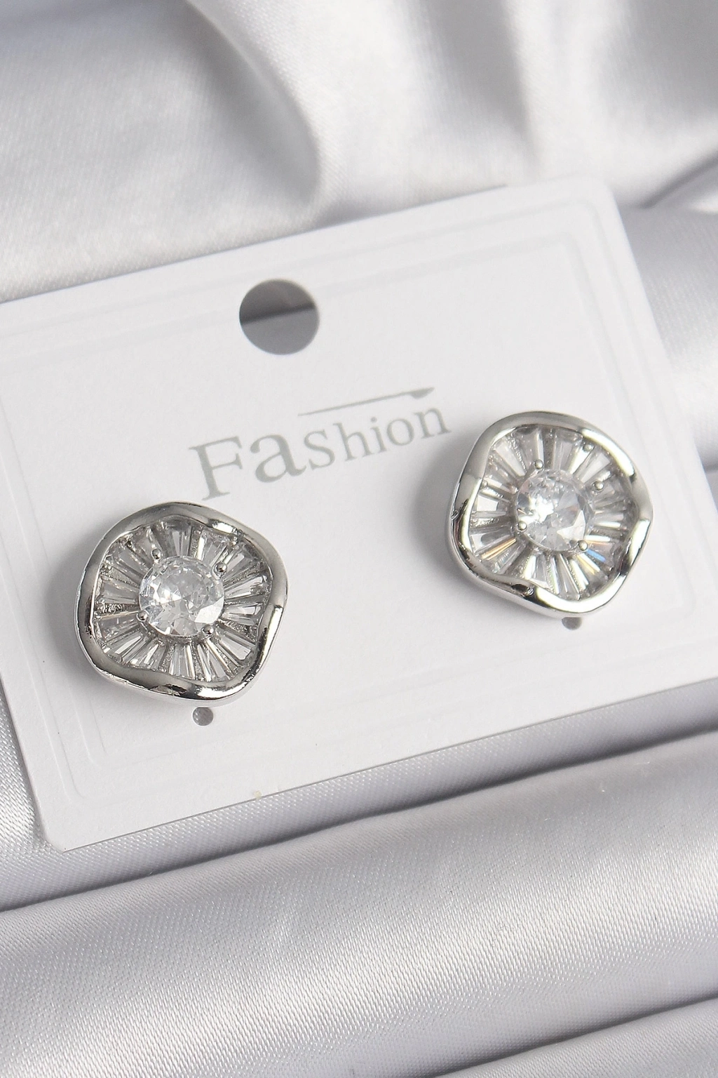 Pirinç Gümüş Renk Zirkon Taşlı Yonca Model Kadın Küpe