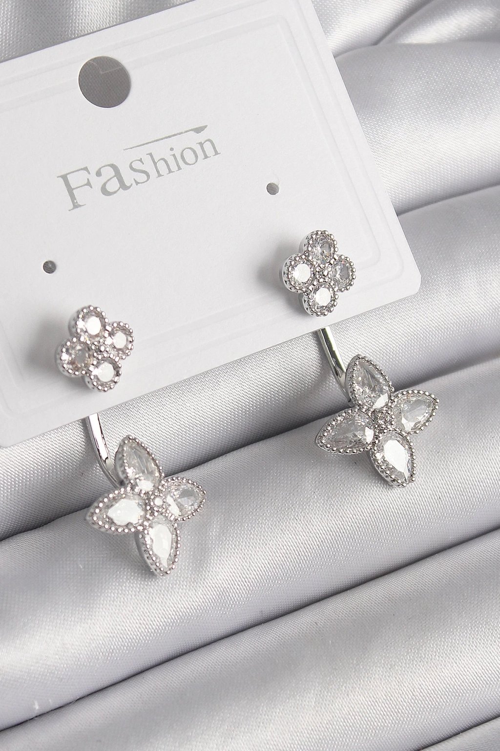 Pirinç Gümüş Renk Zirkon Taşlı Yonca Model Kadın Küpe