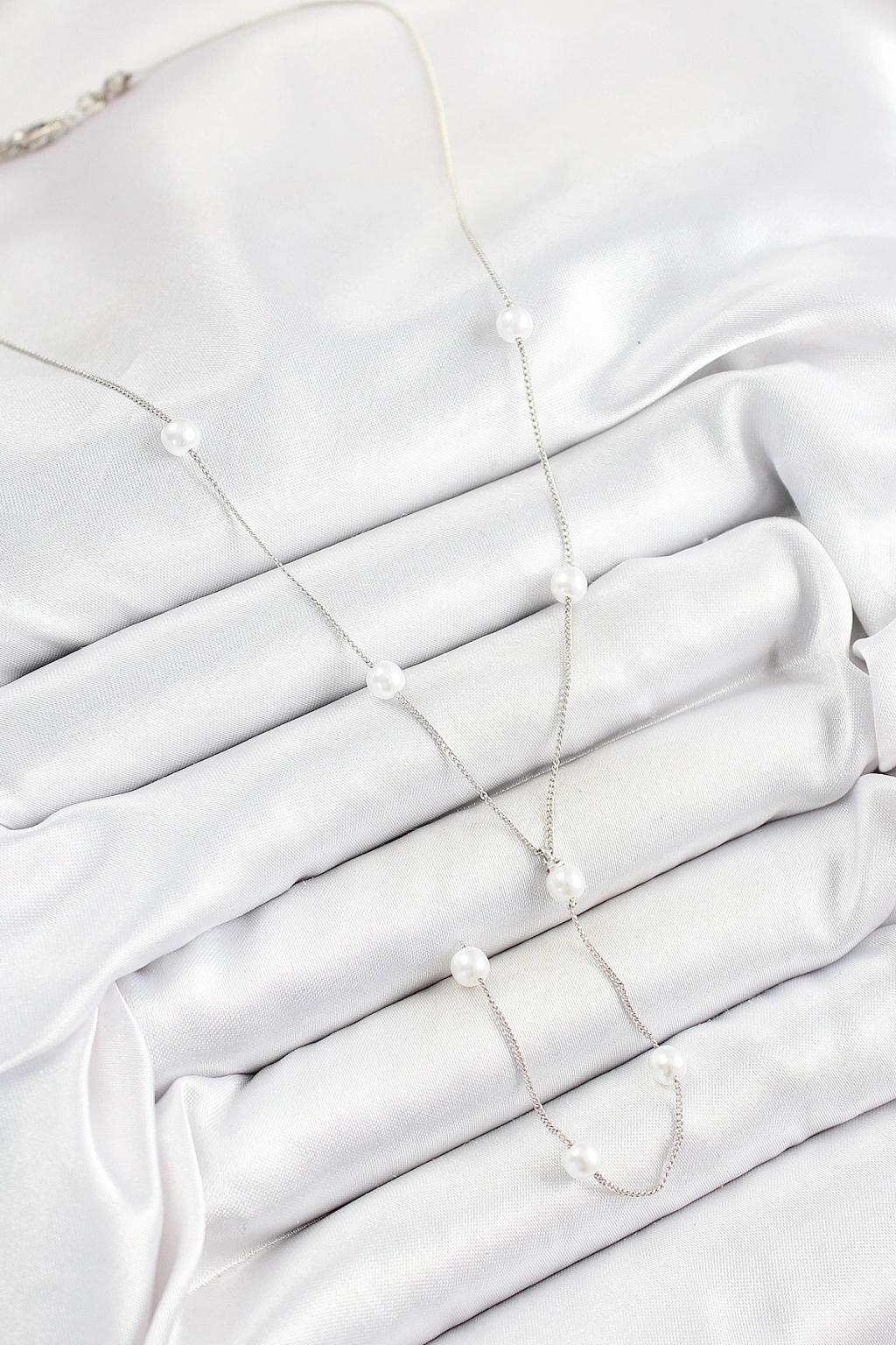Pirinç İnci Figürlü Y Model Gümüş Renk Kadın Kolye