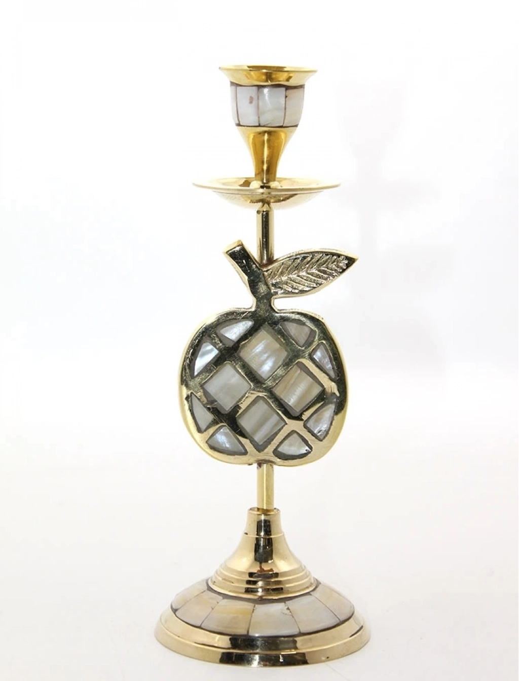 Pirinç Ve Sedef Karışımdan Üretilmiştir. Pirinç Sedefli Tekli Şamdan 20 Cm