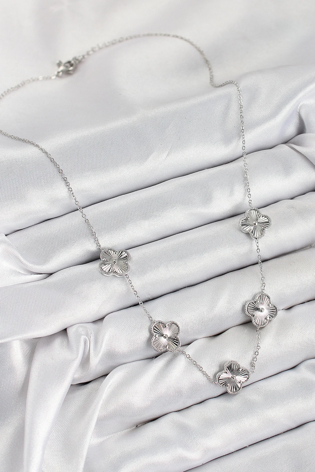 Pirinç VIP Yonca Model Gümüş Renk Kadın Kolye