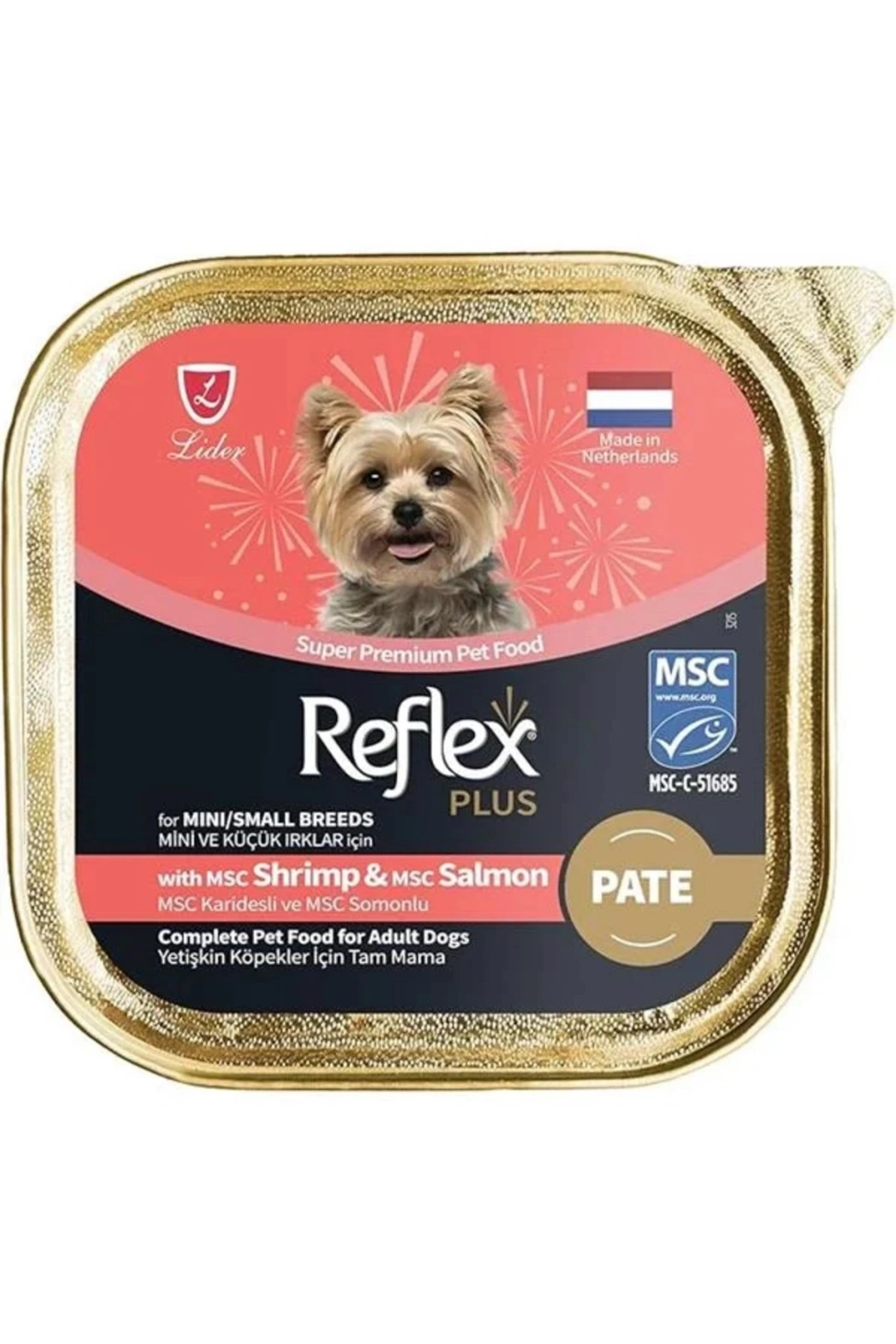 Plus Pate Karidesli ve Somonlu Küçük Irk Yetişkin Konserve Köpek Maması 85 Gr