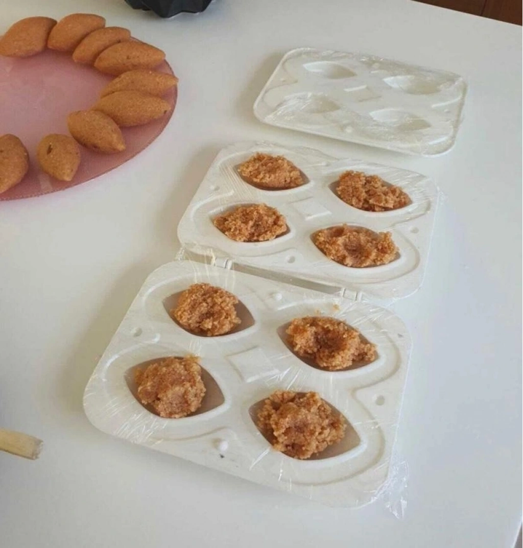- Naylon poşeti serilen kalıbın üzerine hamuru koyunuz.