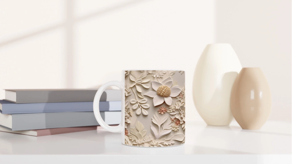 Katmanlı yaprak formları ve pastel dokularla bezeli bu özel kupa, estetik zevkinizi günlük rutine taşımak için tasarlandı.