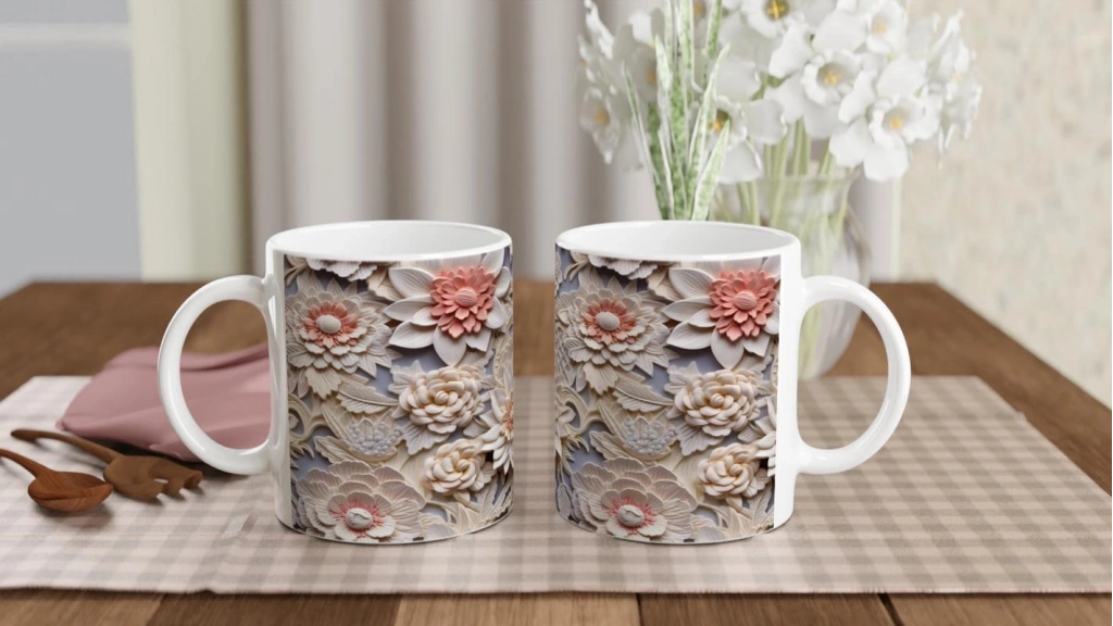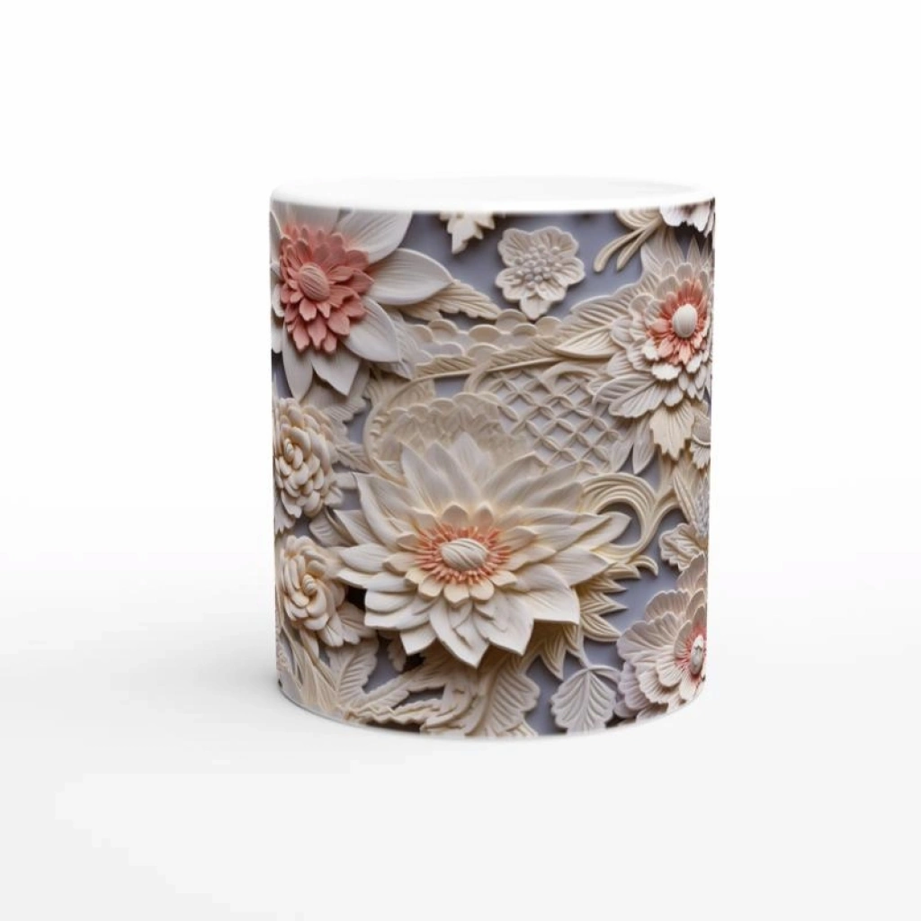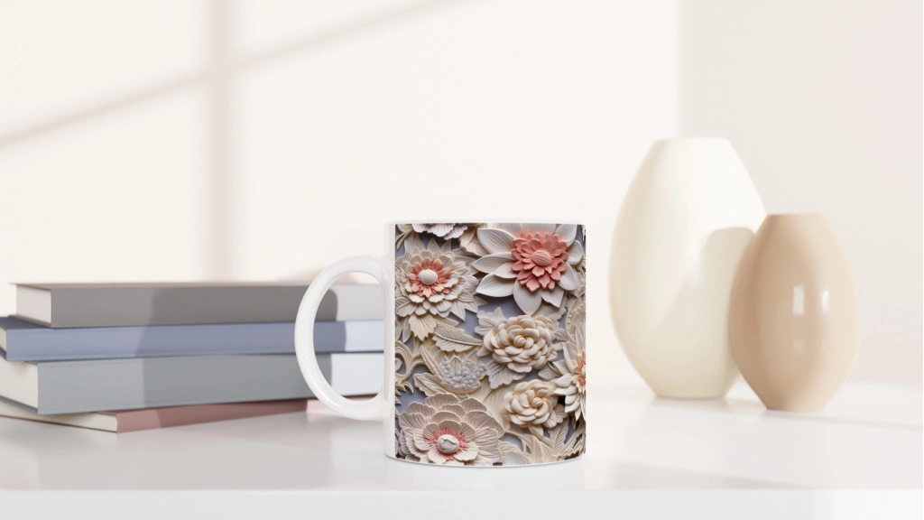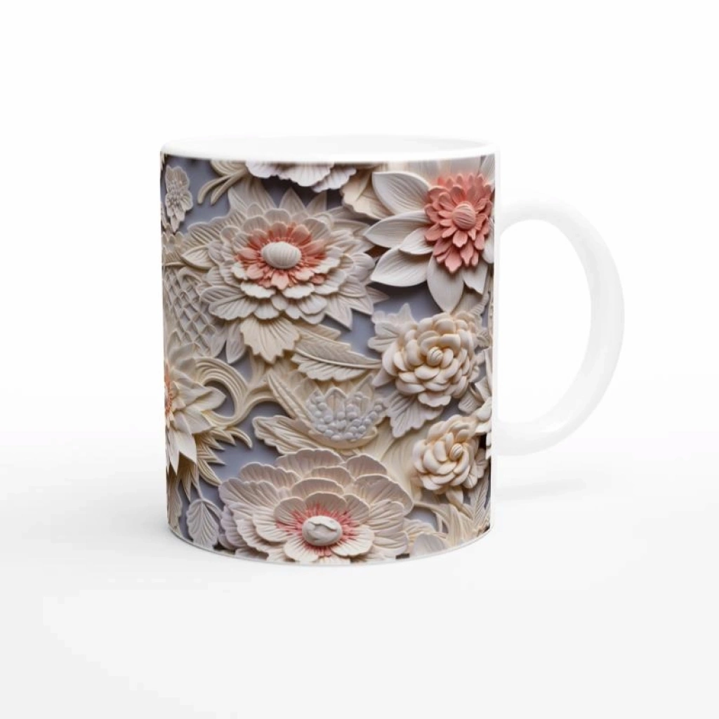 Katman katman açılan çiçek detaylarıyla süslenen bu özel kupa bardak, şıklığı ve sadeliği bir araya getirerek hem günlük kullanım hem de hediye seçenekleri için ideal bir tercih haline geliyor.