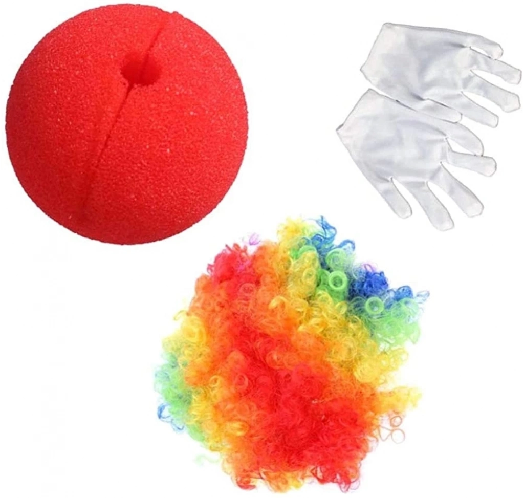 Paket içerisinde 1 Adet  Afro Bonus Peruk , 1 Adet kırmızı renk sünger ve 1 Çift Beyaz Renk Palyaço Eldiveni bulunmaktadır