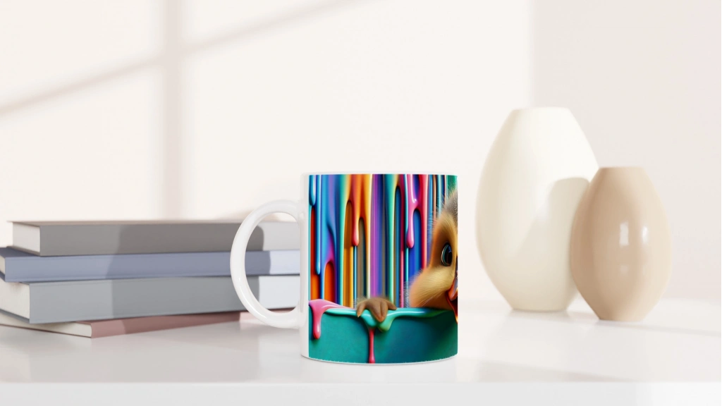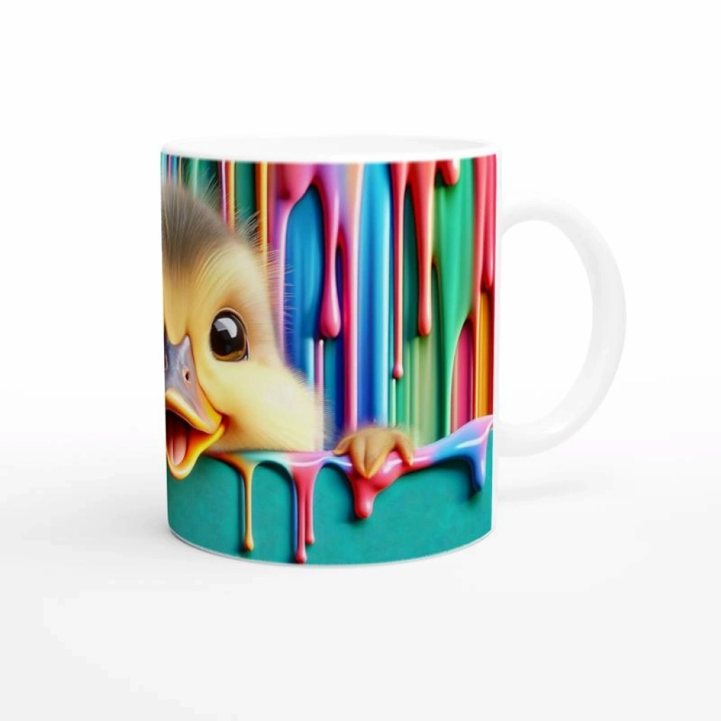 Renkli boya damlalarının arasından neşeyle bakan civciv tasarımı, çocuklar ve içindeki çocuğu yaşatanlar için eğlenceli bir seçenek. Sıcacık içeceklerinizi keyifle yudumlayacağınız bu kupa, her sabahınıza neşe katacak!