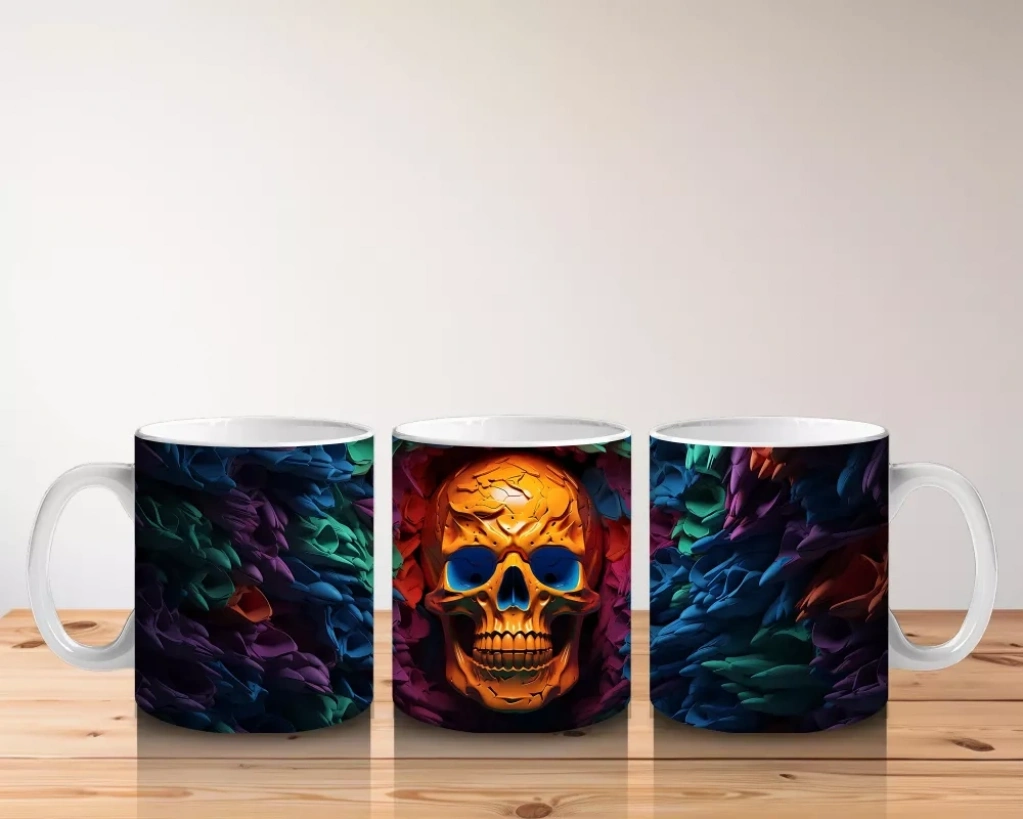 Renk Patlaması Arasında Parlayan Kafatası – Hediyelik Kahve KupasıRenk Patlaması Arasında Parlayan Kafatası – Hediyelik Kahve Kupası Canlı renk patlamaları içinde öne çıkan bu parlak kafatası figürü, dinamik ve enerjik bir baskılı kupa tasarımıdır. Cadılar Bayramı temalı modern bir hediyelik kahve kupası alternatifi.