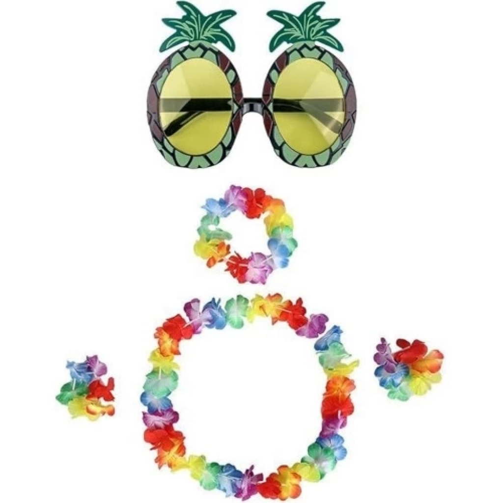 Renkli Ananas Gözlük, Taç, Kolye ve Bileklik Seti