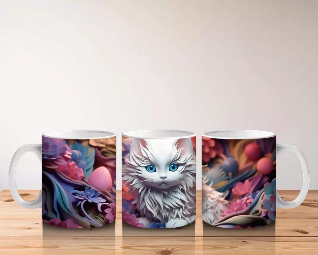 Renkli ve dinamik arka planla kontrast oluşturan bu göz alıcı kedi figürü, bakışlarıyla tüm ilgiyi üzerine çekiyor. Modern ve çarpıcı tasarımlardan hoşlananlara özel bir kupa.