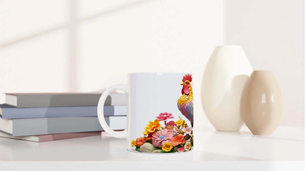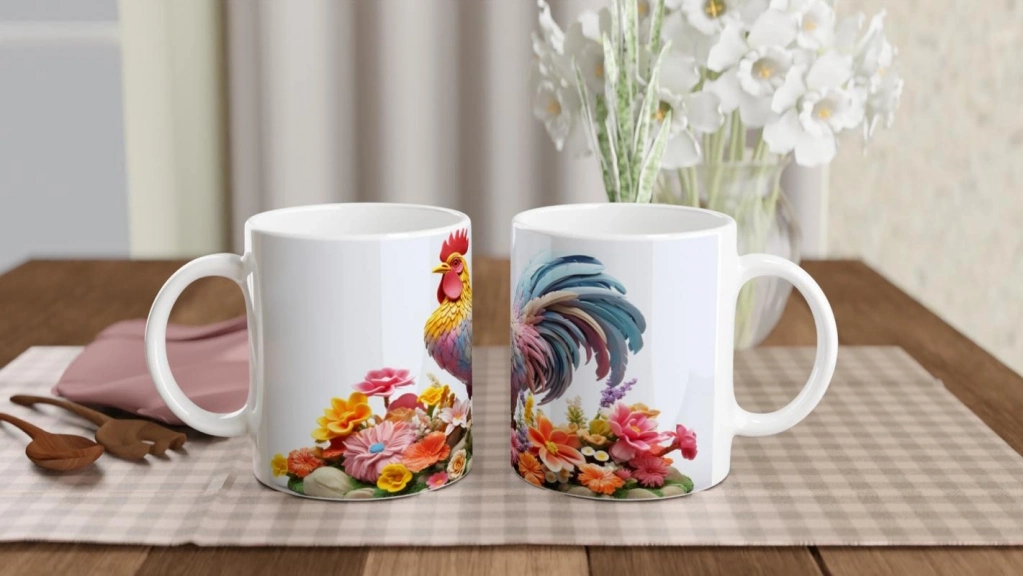 Renkli Çiçekler Arasında Pastel Horoz Baskılı Kupa Bardak, doğanın neşesini yansıtan canlı bir tasarıma sahip. Gökkuşağı tonlarındaki tüyler ve bahar çiçekleriyle bezeli bu özel kupa, horoz baskılı kupa arayanlar için şık ve dikkat çekici bir seçenek.