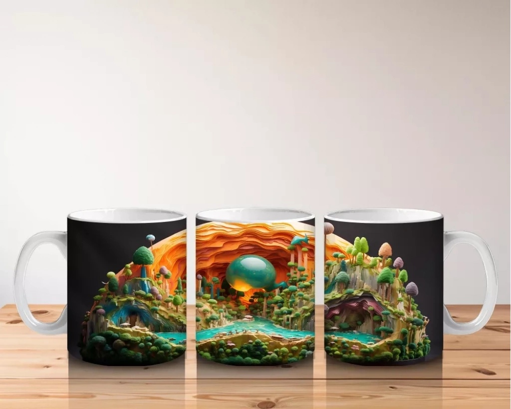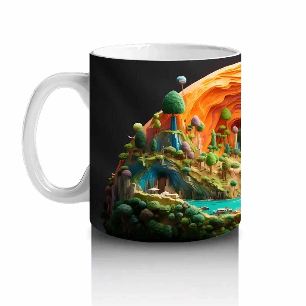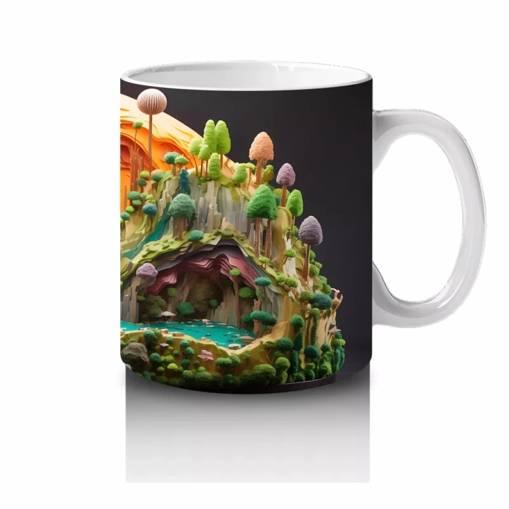 Renkli Masalsı Mantar Ormanı ve Küçük Ev – Baskılı Kahve Kupası
