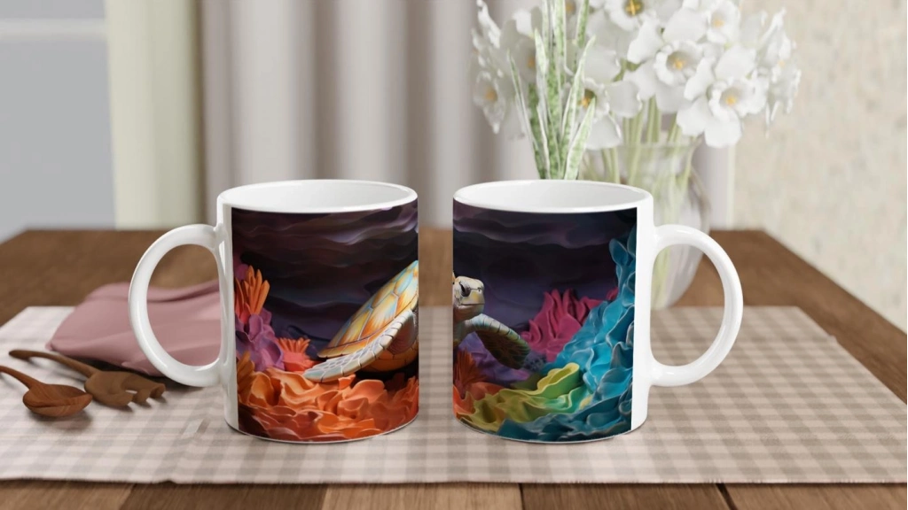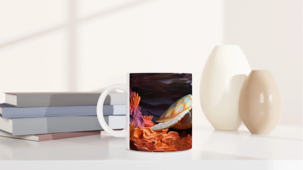 Okyanus derinliklerinden gelen renk cümbüşü ve kaplumbağa zarafetiyle tasarlanan bu su altı temalı kupa bardak, ruhunuzu denizle buluşturuyor.