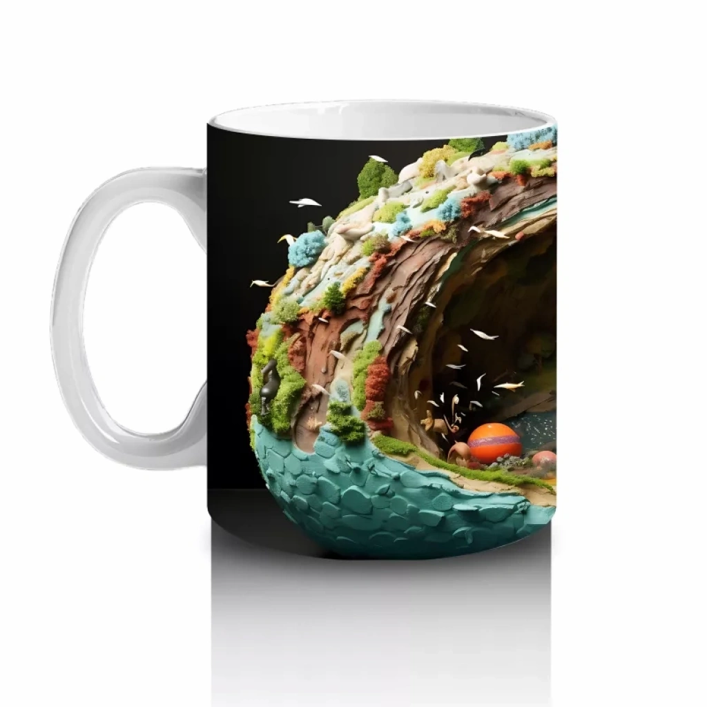Renkli Mercanlar ve Balıklarla Süslenmiş Su Altı Mağarası – Baskılı Kahve Kupası