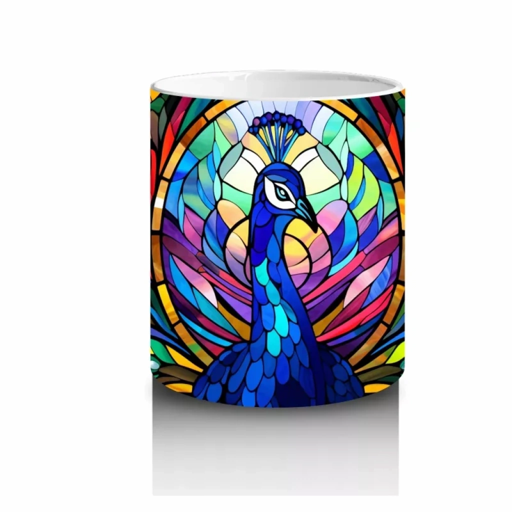 Göz alıcı tüy desenleriyle dikkat çeken bu zarif tavus kuşu, ihtişamı ve asaleti aynı anda yansıtıyor. Doğanın en gösterişli figürlerinden ilham alan şık ve etkileyici bir kupa tasarımı.