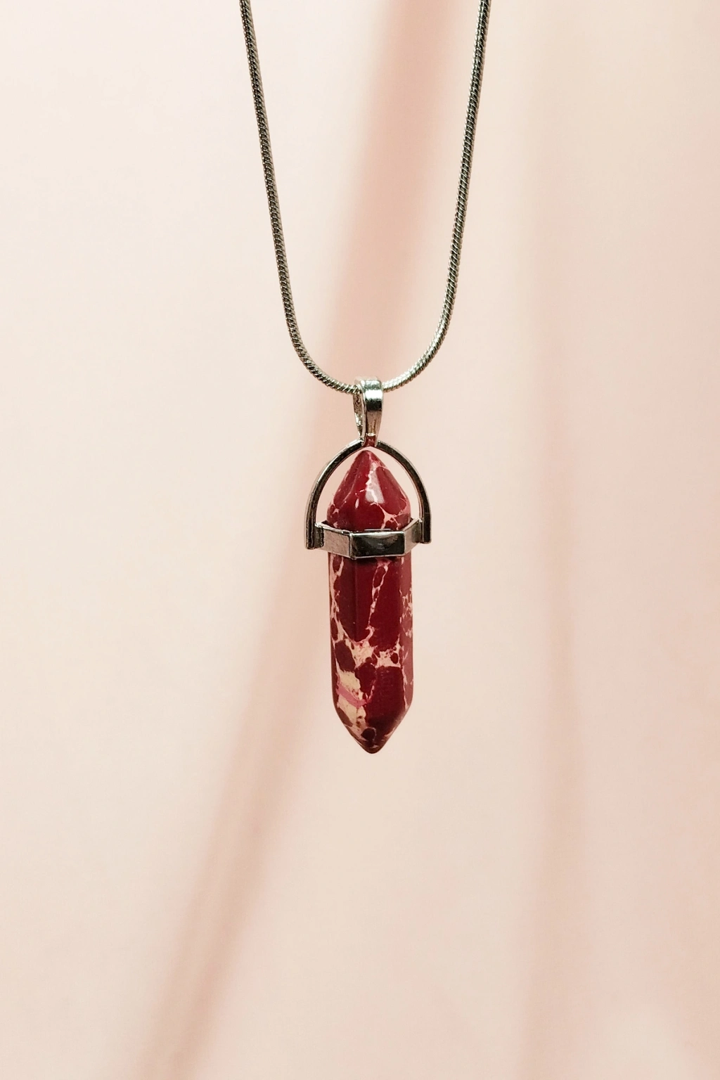 Rodokrozit Doğal Taşı Zincirli El Yapımı Tasarımlı Kolye Uç: 3,5 cm Zincir: 20 cm Kutulu