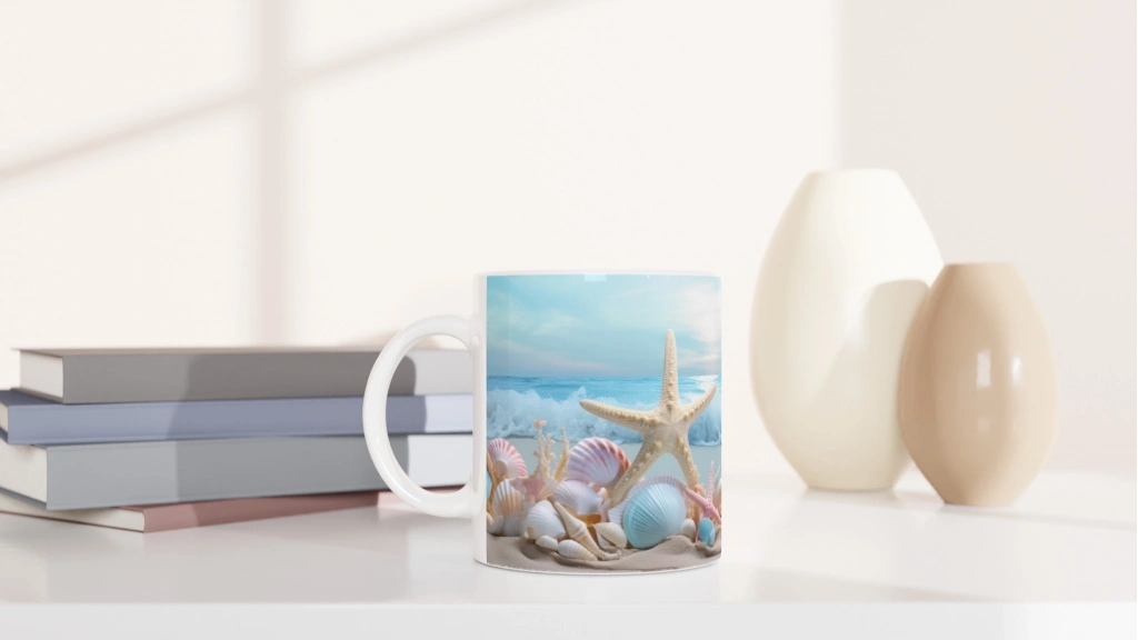 Göz alıcı renk geçişleri ve sahil esintisiyle tasarlanan bu özel kupa bardak, yaz koleksiyonları için ideal bir seçimdir.