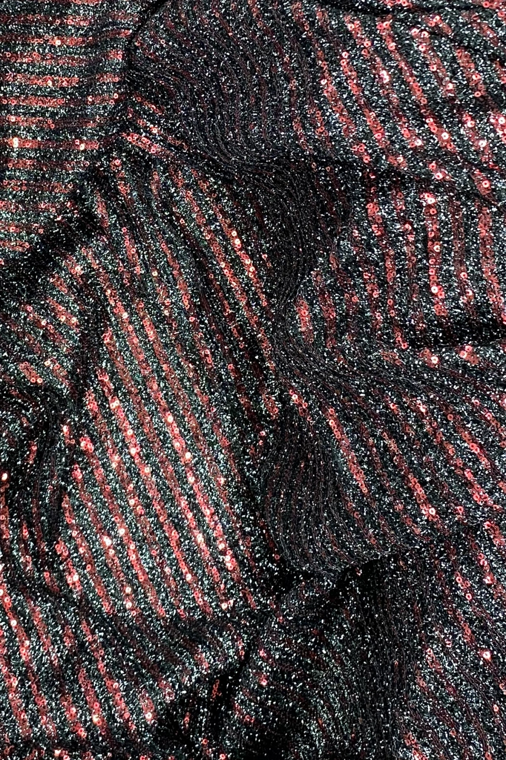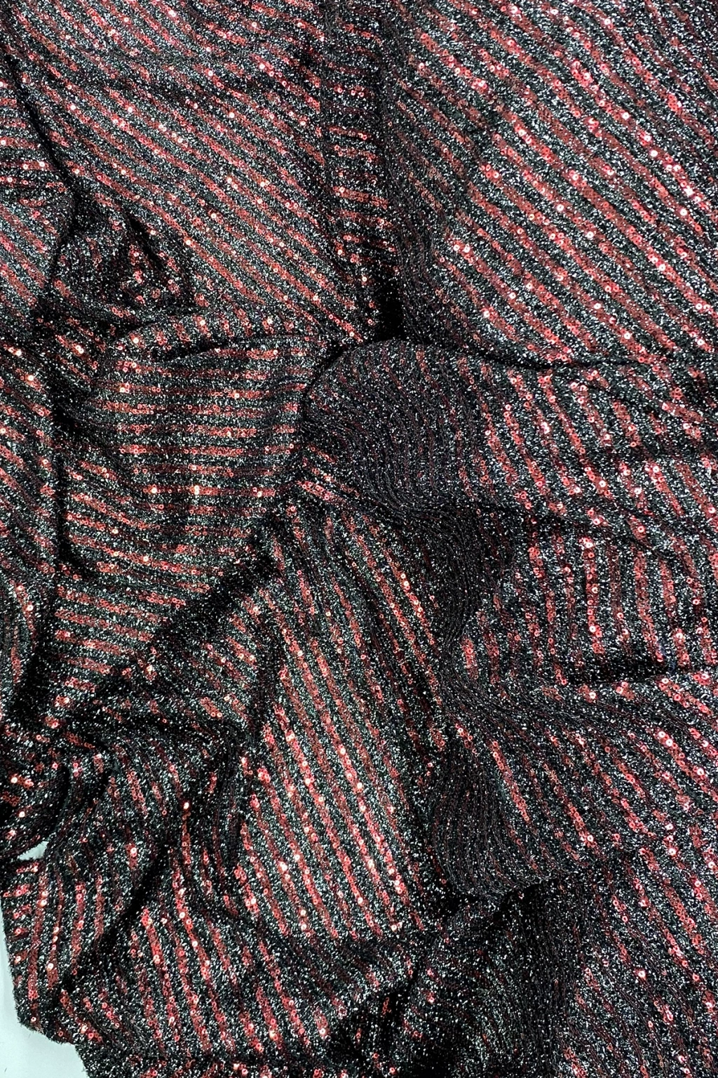 Sakallı Çizgili Pullu Kumaş Pullu Payet Kumaş Abiye Nişan Düğün Siyah Bordo