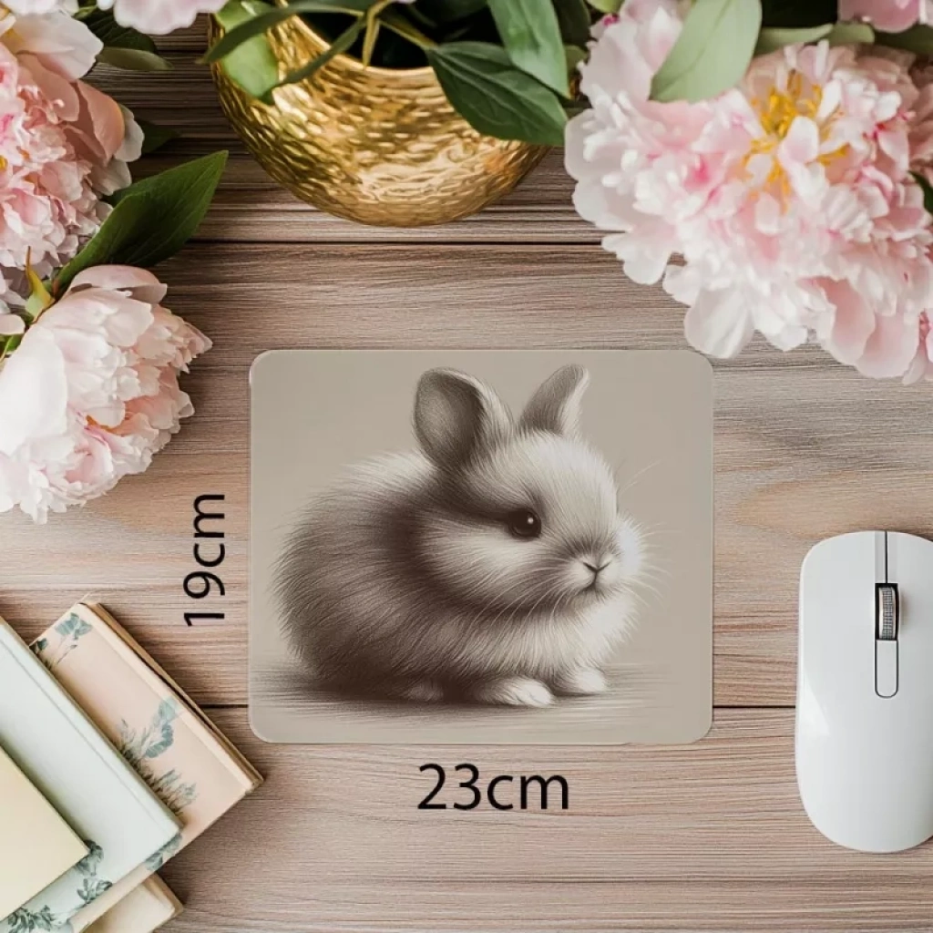 Sanatsal karakalem tavşan temalı mouse pad, pürüzsüz kaydırma yüzeyi ve kaymaz tabanıyla zarif ve konforlu kullanım sunar.
