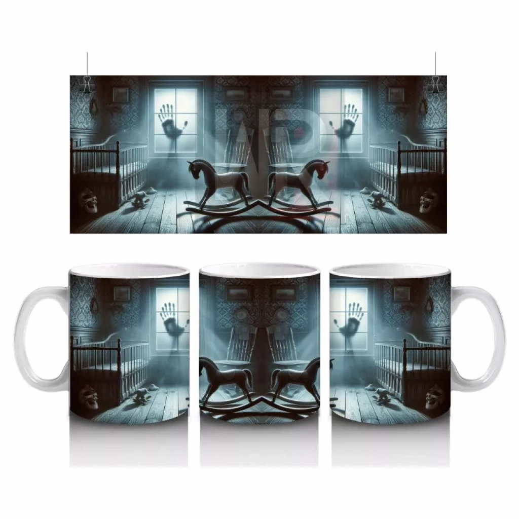 Sandalyede Oturan Hayalet Figürlü Gotik Cadılar Bayramı Baskılı Kupa Bardak