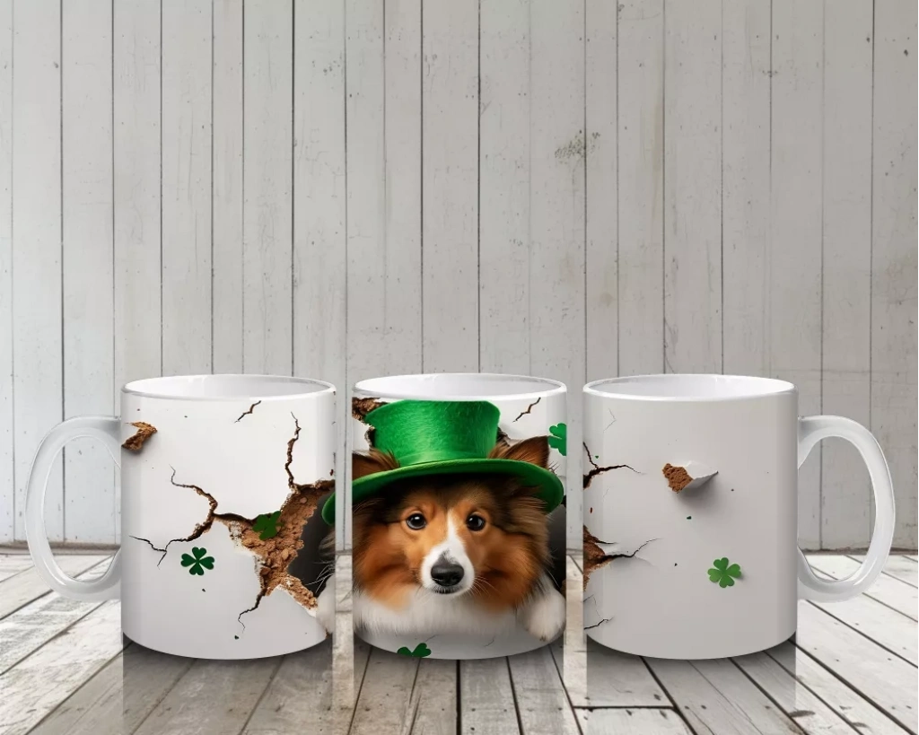 Şapkalı Köpek ve Bahar Yaprakları – Baskılı Kahve Kupası