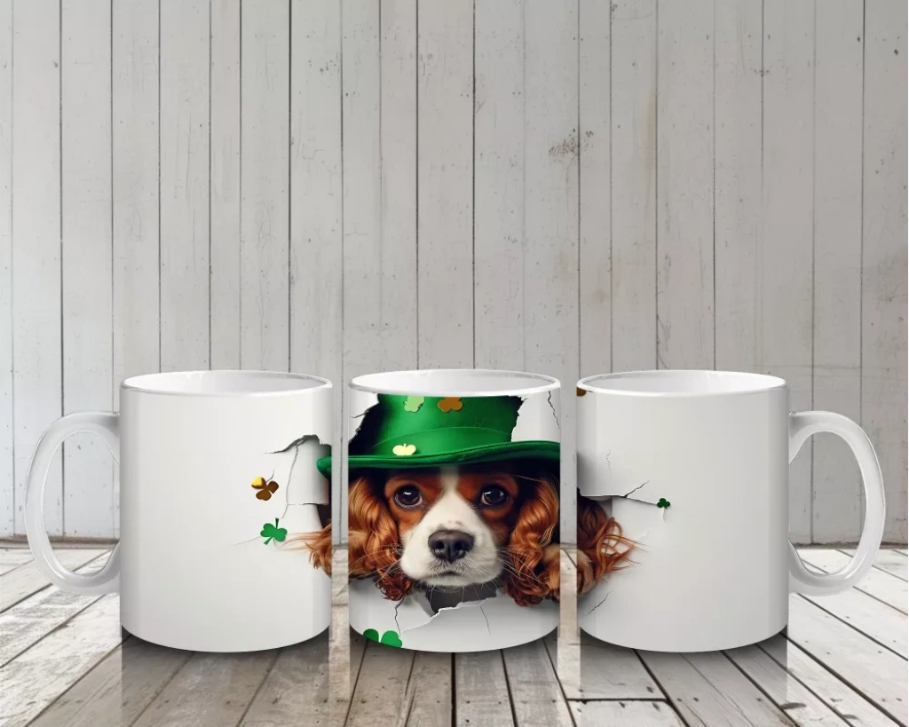Şapkasını takmış Fransız Bulldog, St. Patrick partisine altın kazanıyla katılıyor! Sevimli ve eğlenceli havasıyla bu kupa, her yudumda kutlama hissi yaratıyor.