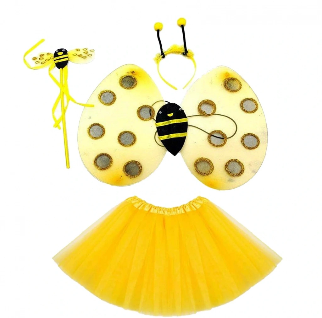 Sarı Renk Arı Kanadı Kostüm Seti (tütü, Kanat, Taç, Asa)