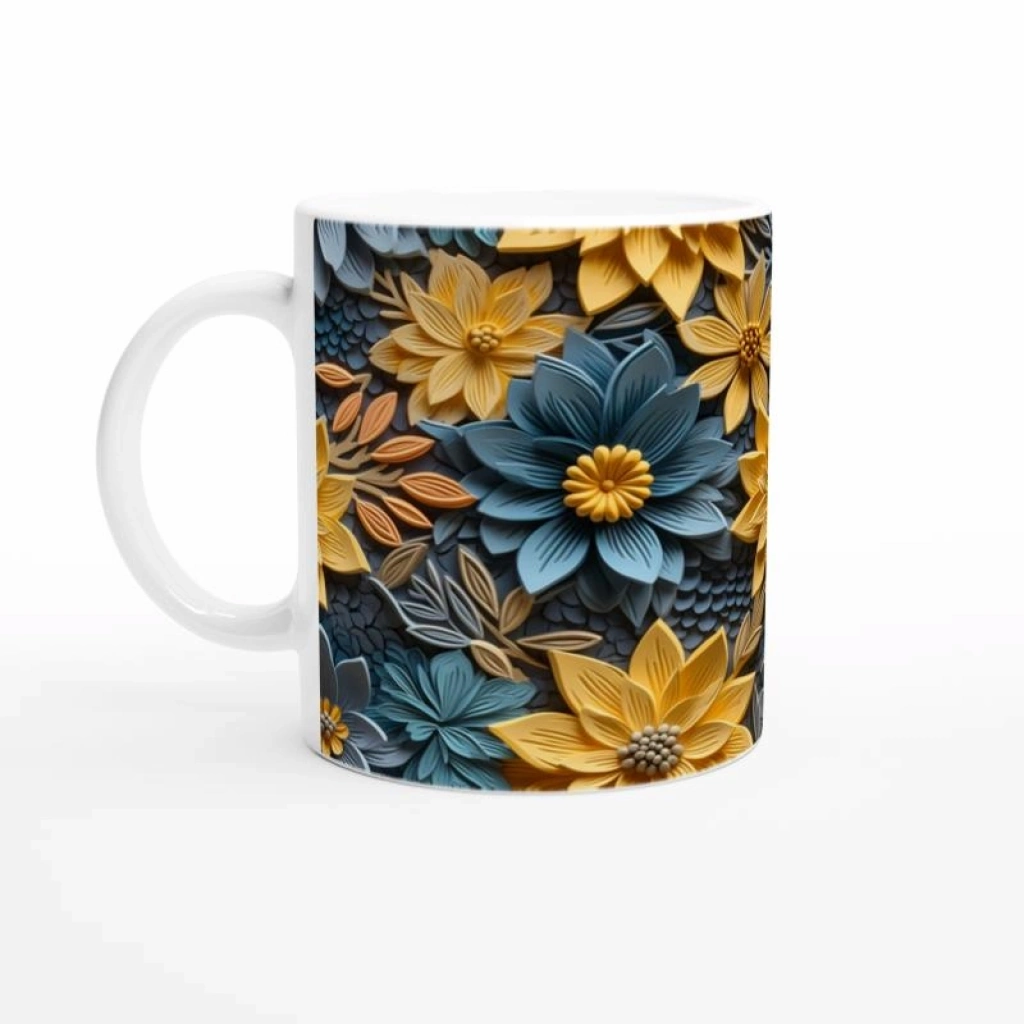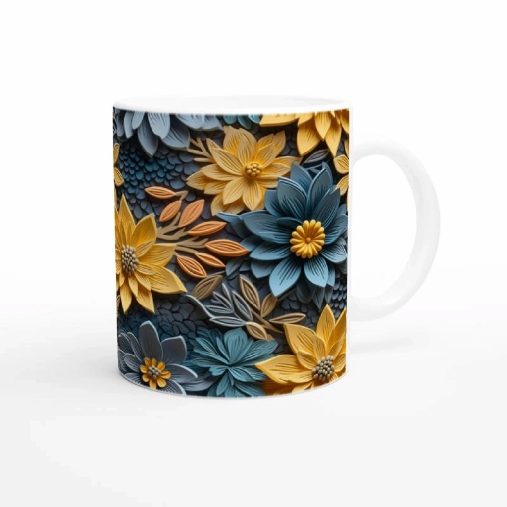 Sarı ve Mavi Rölyef Çiçeklerle Desenlenmiş Kupa Bardak