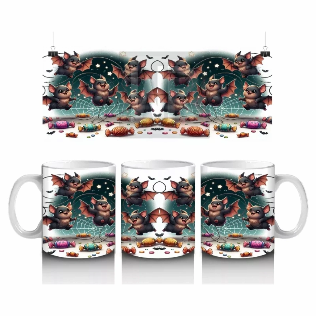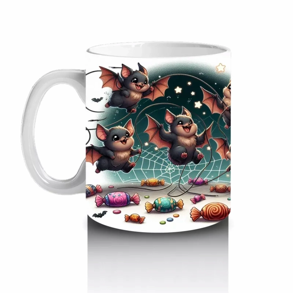 Renkli cadılar figürleriyle şeker toplama sahnesini yansıtan bu kupa bardak, Cadılar Bayramı keyfinize eğlenceli bir dokunuş katar.