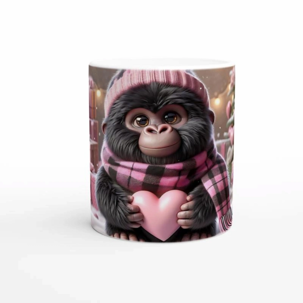 Sevgi Dolu Bebek Goril Temalı Kış Konseptli Baskılı Kupa Bardak, pembe hediye kutuları, kalp süslemeleri ve kar detaylarıyla özenle hazırlanmış bir tasarım sunuyor. Sevdiklerinize sıcacık bir sürpriz yapmak için mükemmel bir hediye alternatifi.