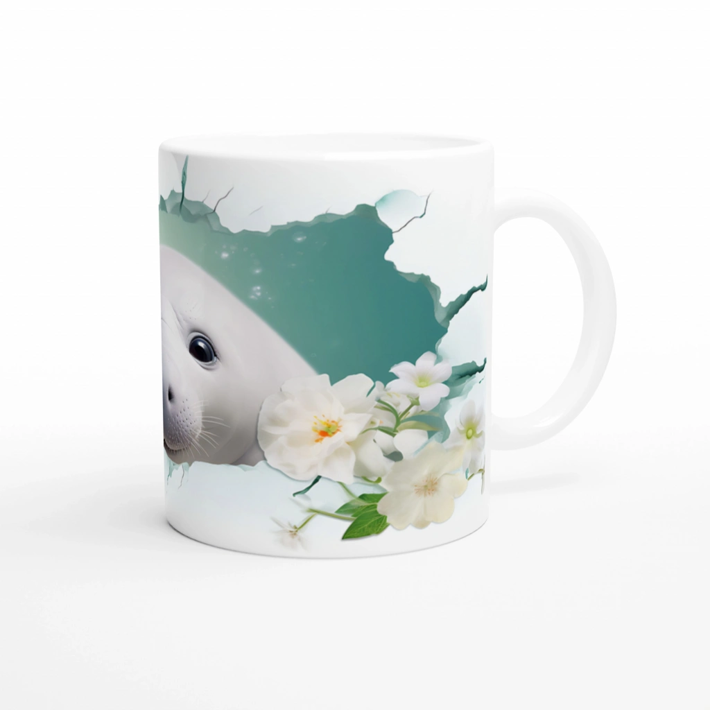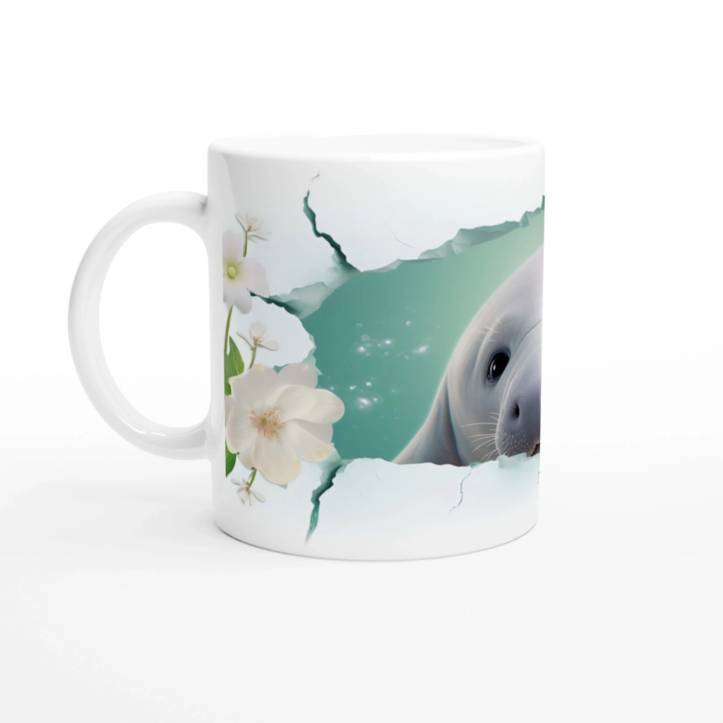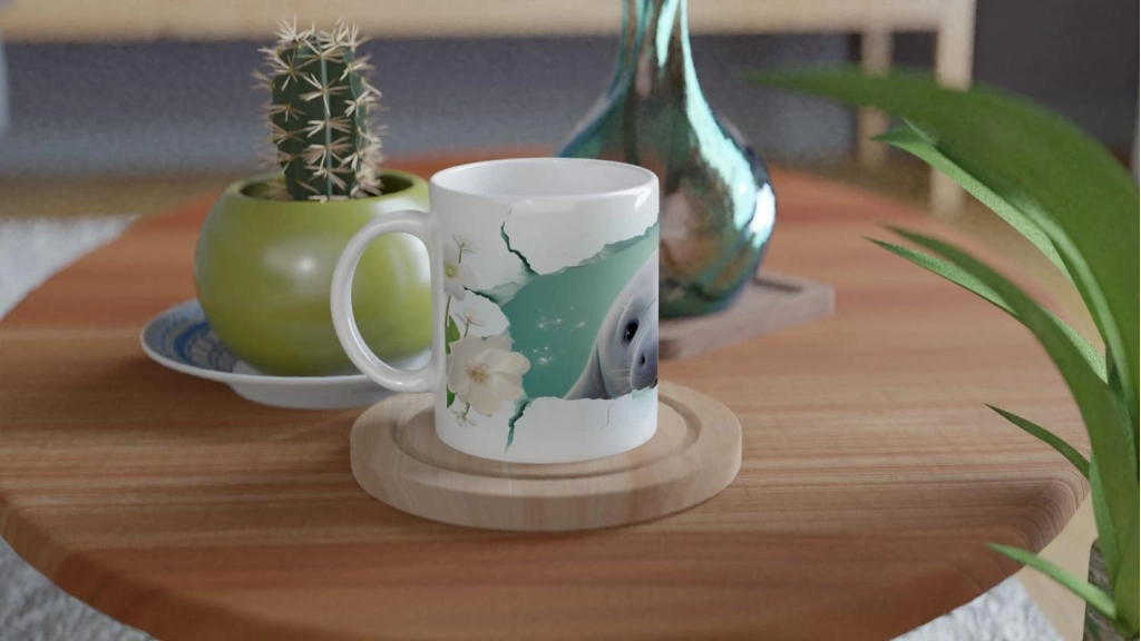 Sevimli Fok ve Çiçek Detaylı Su Altı Temalı Kupa Bardak