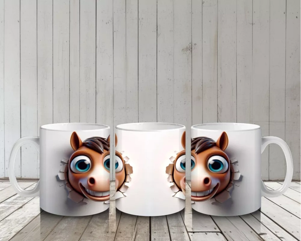 Sevimli Gözlü İkiz At Maskotları – Baskılı Kahve Kupası