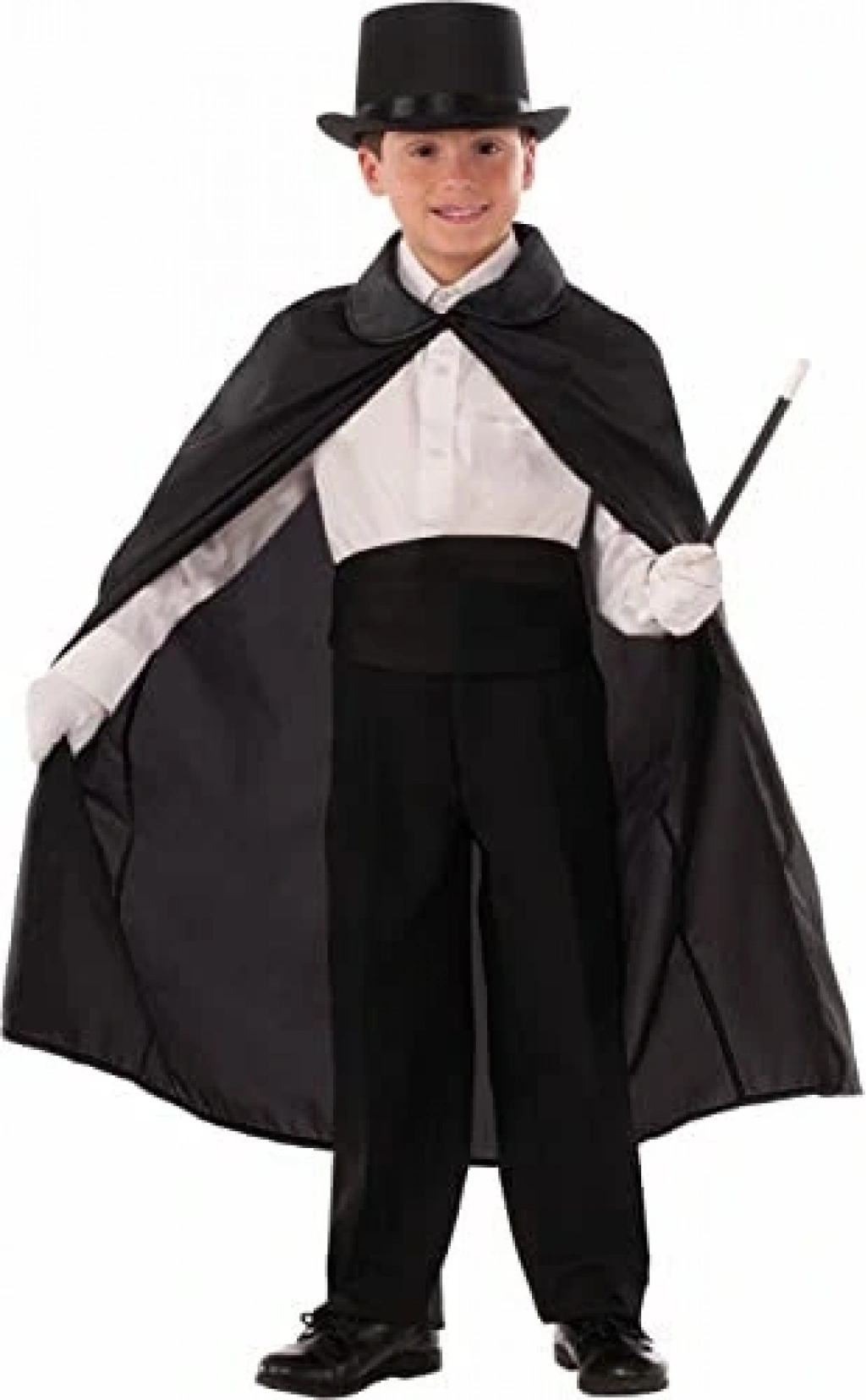 Sihirbaz Pelerini 90 cm ve Sihirbaz Şapkası Siyah Renk Çocuk Boy