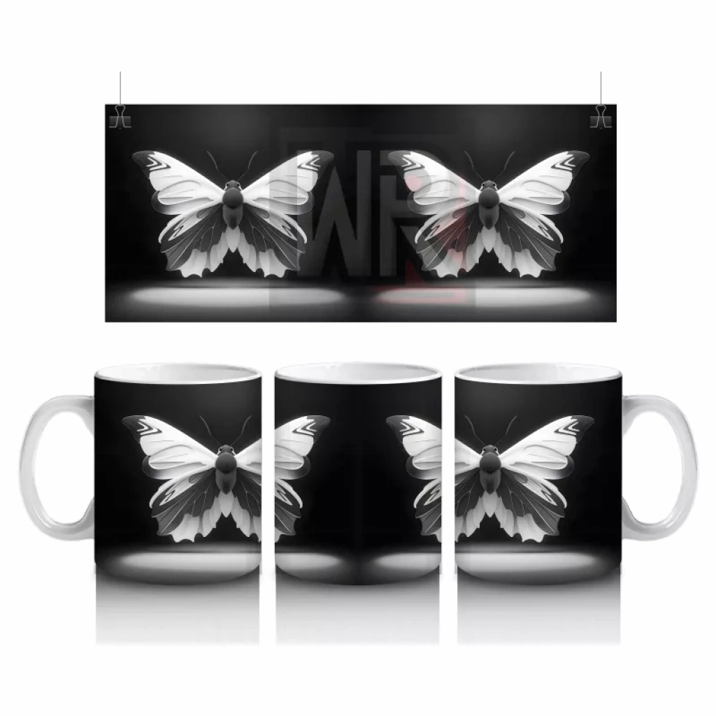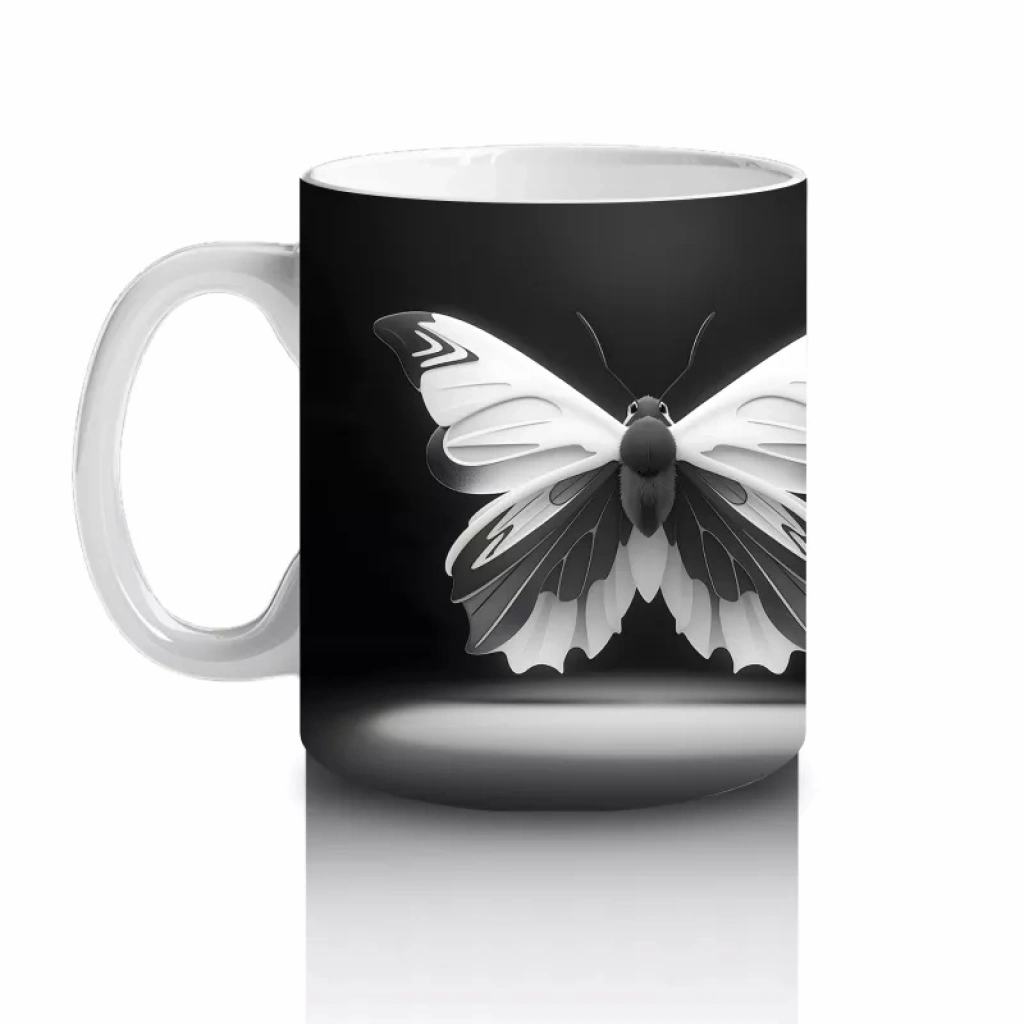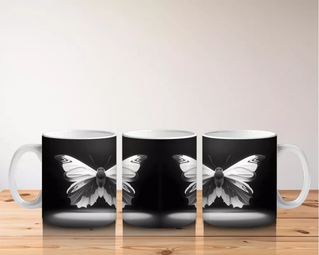 Kontrastın en zarif haliyle buluştuğu siyah beyaz kelebek ikilisi, sade ama güçlü bir görsellik sunuyor. Minimalist tasarımları sevenler için şık ve dengeli bir kupa.