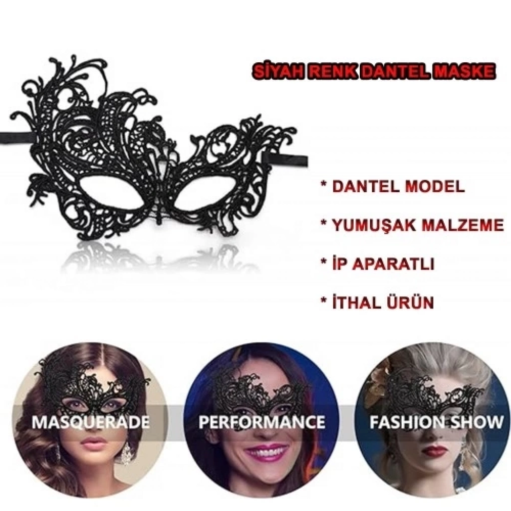 SİYAH DANTEL İŞLEMELİ PARTİ MASKESİÜrün ÖzellikleriRenk: SiyahTasarım: Şık ve zarif dantel işlemeliMalzeme: Dayanıklı ve hafif kumaşKullanım Alanı: Maskeli balolar, düğünler, temalı partiler ve özel etkinliklerÖlçü: Standart yetişkin boyPaket İçeriği1 adet Siyah Dantel İşlemeli Parti Maskesi