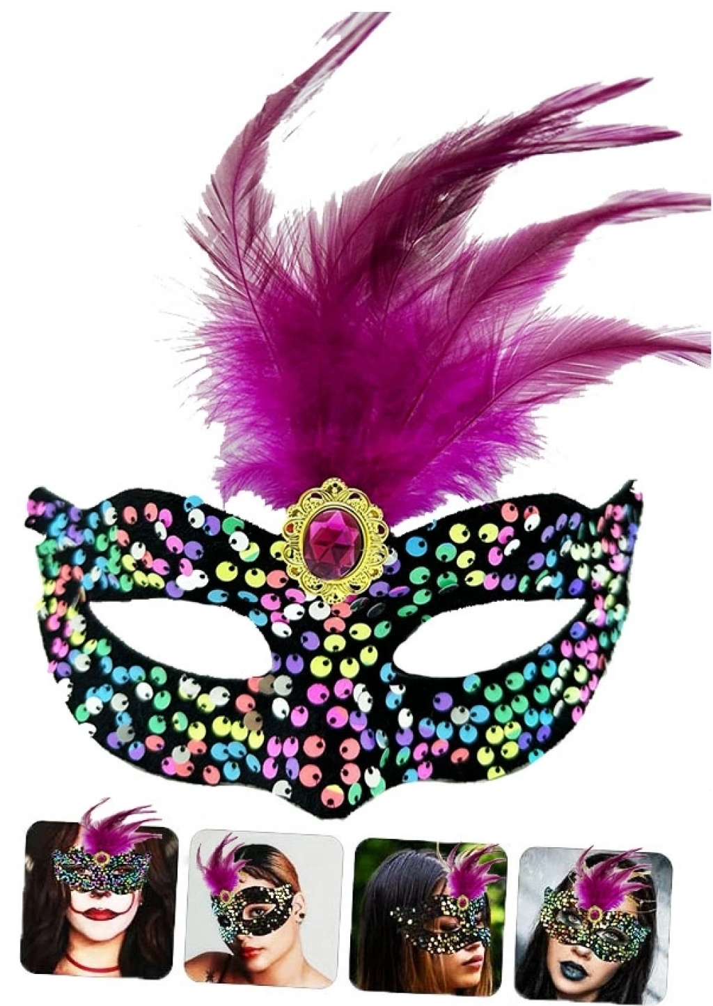 - Pembe tüyler ve pembe taşlar maskeye lüks ve göz alıcı bir görünüm kazandırır.