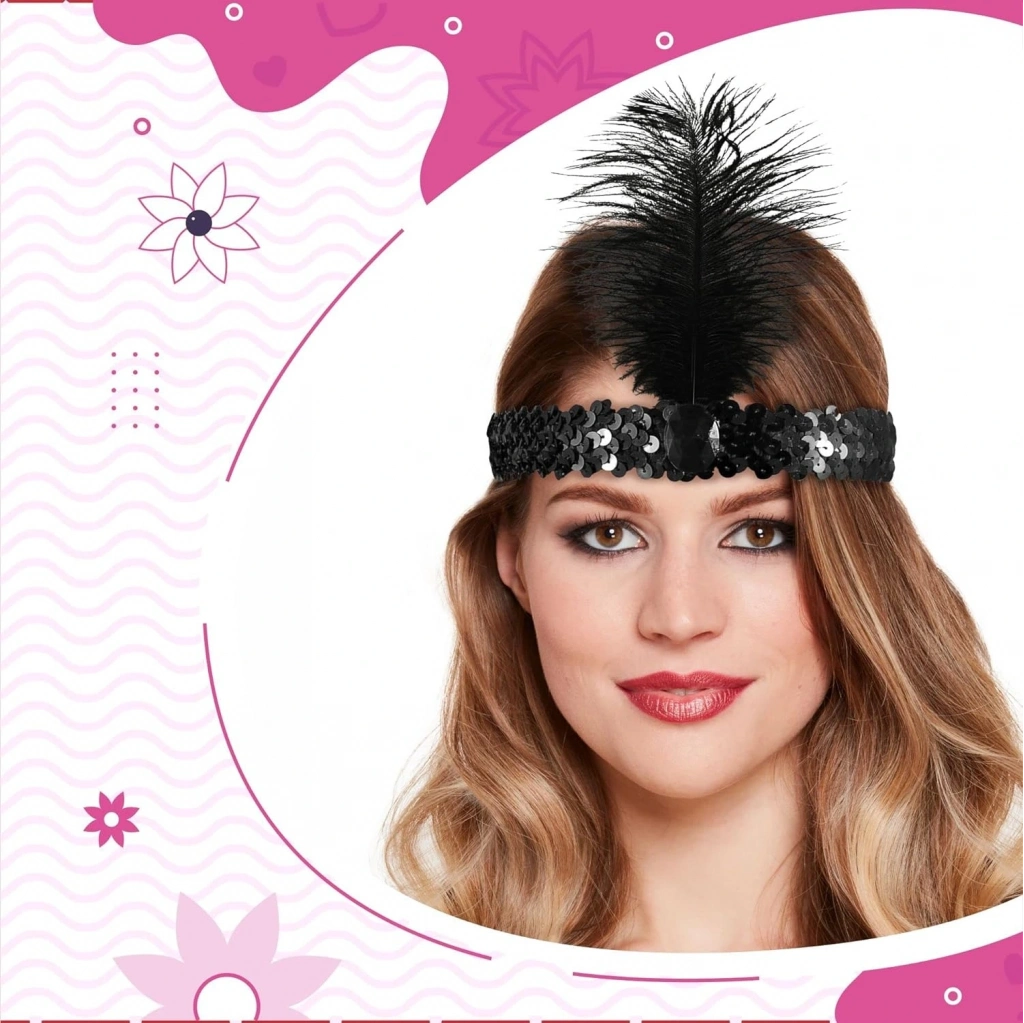 Siyah Renk Çarliston Başlık 90 Lı Yıllar 80 Li Yıllar Tüylü Saç Bandı