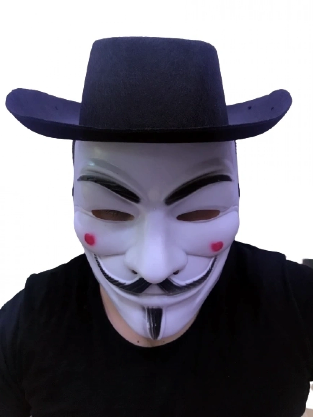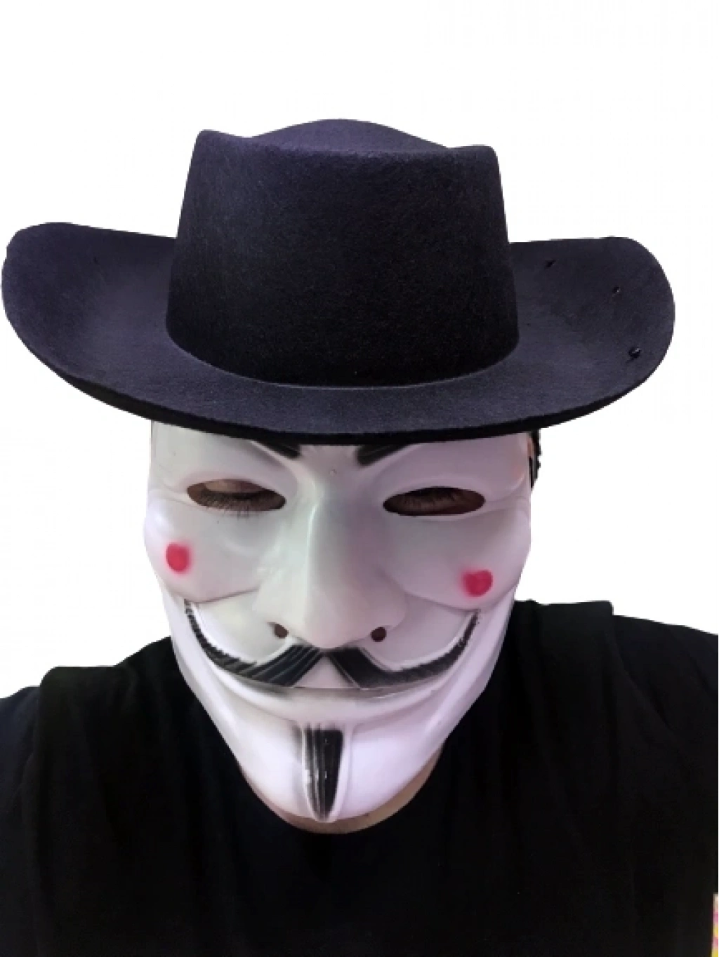 Siyah Renkli Delikli Çocuk Boy Vendetta Şapkası Ve Vendetta Maskesi