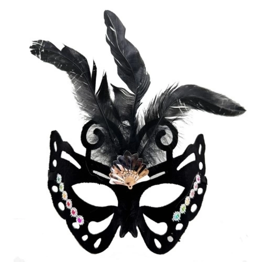 Siyah Süet Tüylü Kelebek Figür Parti Maskesi