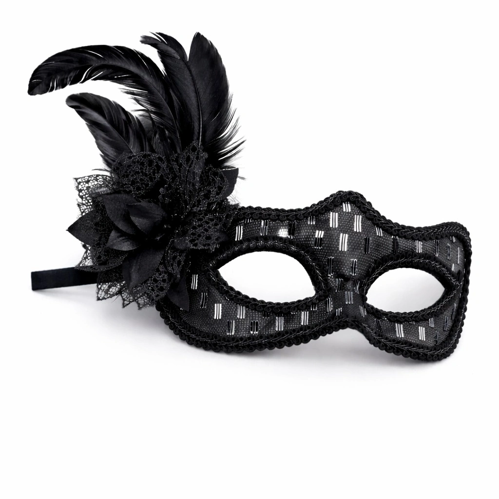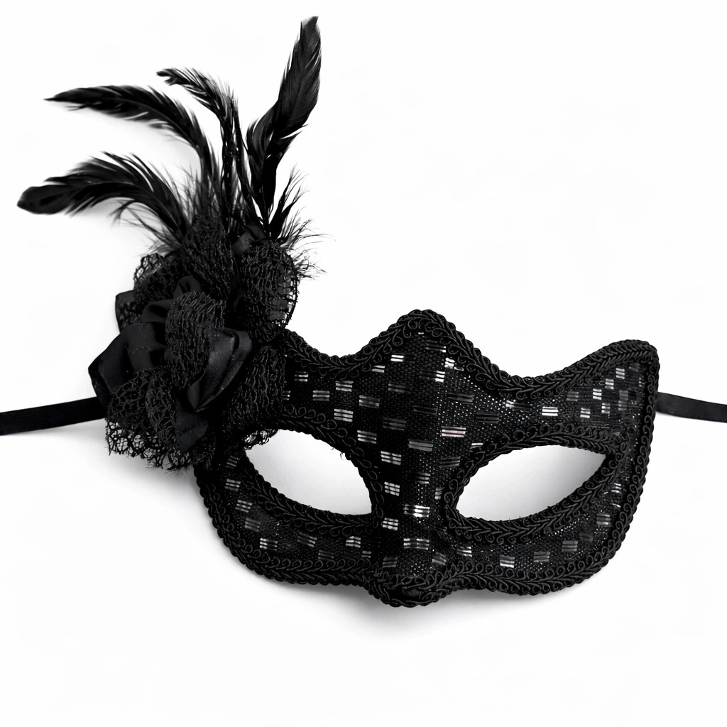 Siyah Tüylü Balo Maskesi Kadın Parti Aksesuarı